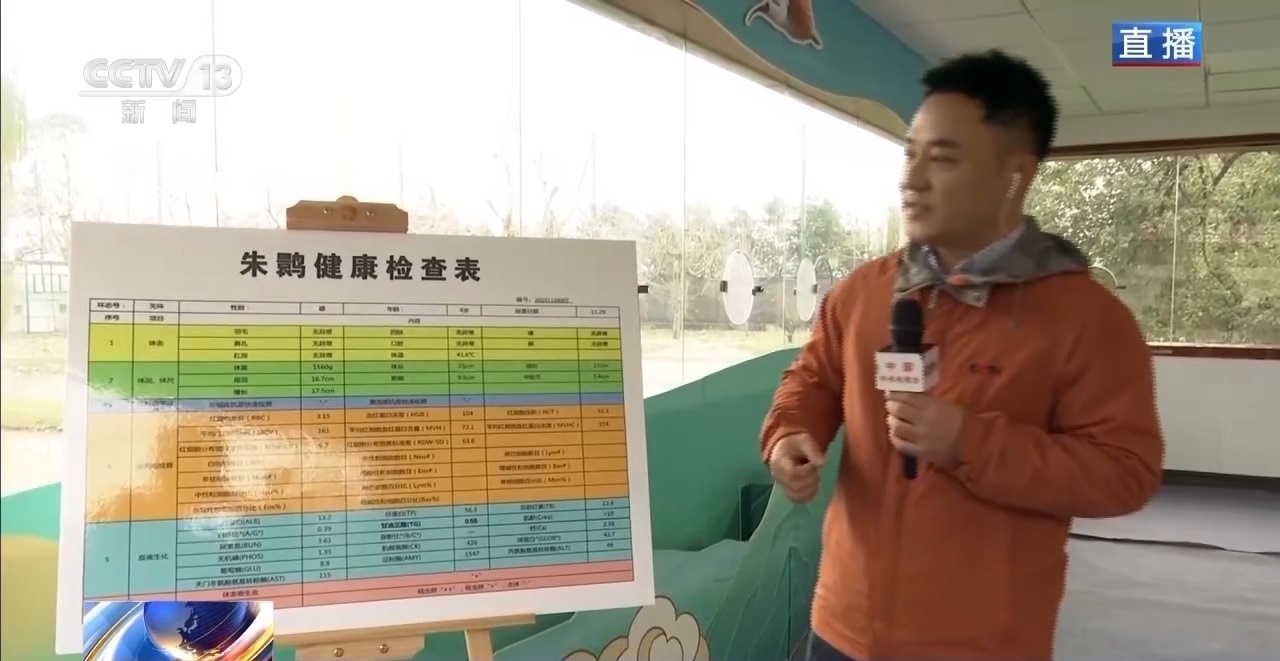 另一邊,保健醫(yī)生們正在給朱鹮抽血。完成抽血之后,朱鹮的血樣會(huì)通過機(jī)器完成血常規(guī)、生化指標(biāo)和寄生蟲檢測等50多項(xiàng)檢查,最終形成一張健康檢查表,相當(dāng)于我們的體檢。這樣精確的健康監(jiān)測,就是保證朱鹮種源質(zhì)量的依據(jù)。