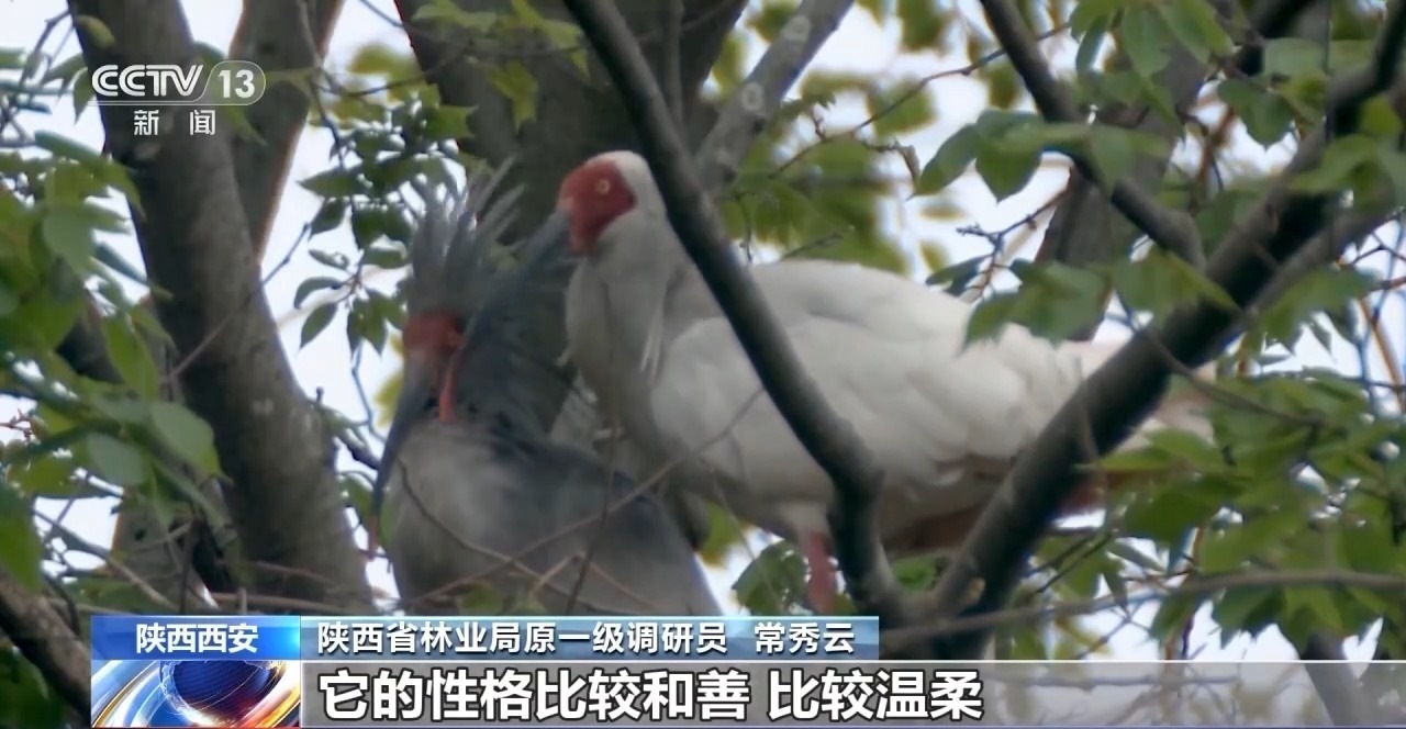 陜西省林業(yè)局原一級(jí)調(diào)研員 常秀云:它的性格比較和善,比較溫柔。它不像那些猛禽,哪怕蒼鷺和白鷺都比它要強(qiáng)壯,但是朱鹮不到萬不得已的時(shí)候,它是不會(huì)向人發(fā)出攻擊,或者向同伴鳥類發(fā)出攻擊的。所以它是一種比較溫文爾雅的鳥類。