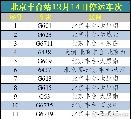 央視網(wǎng)消息:受降雪影響,12月14日北京西站、北京豐臺站部分列車臨時停運(yùn),已購買停運(yùn)列車車票的旅客,可于30日內(nèi)辦理全額退票手續(xù)。請廣大旅客合理安排出行,關(guān)注車站公告或12306網(wǎng)站信息。