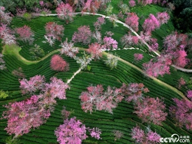 2023年12月18日,云南大理,無(wú)量山櫻花谷的冬櫻花迎來最佳觀賞期。如云似霞的櫻花與碧綠如染的茶園交織在一起,構(gòu)成了一道亮麗的風(fēng)景。
