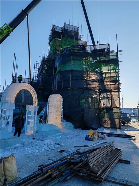 為迎接2025年1月在哈爾濱舉行的亞冬會,今年冰雪大世界的規(guī)模是有史以來最大的一次。工程浩大,對冰雕、冰燈的制作要求也就更嚴格,現(xiàn)場請了許多相關(guān)的建筑公司來監(jiān)理、把關(guān)施工質(zhì)量。