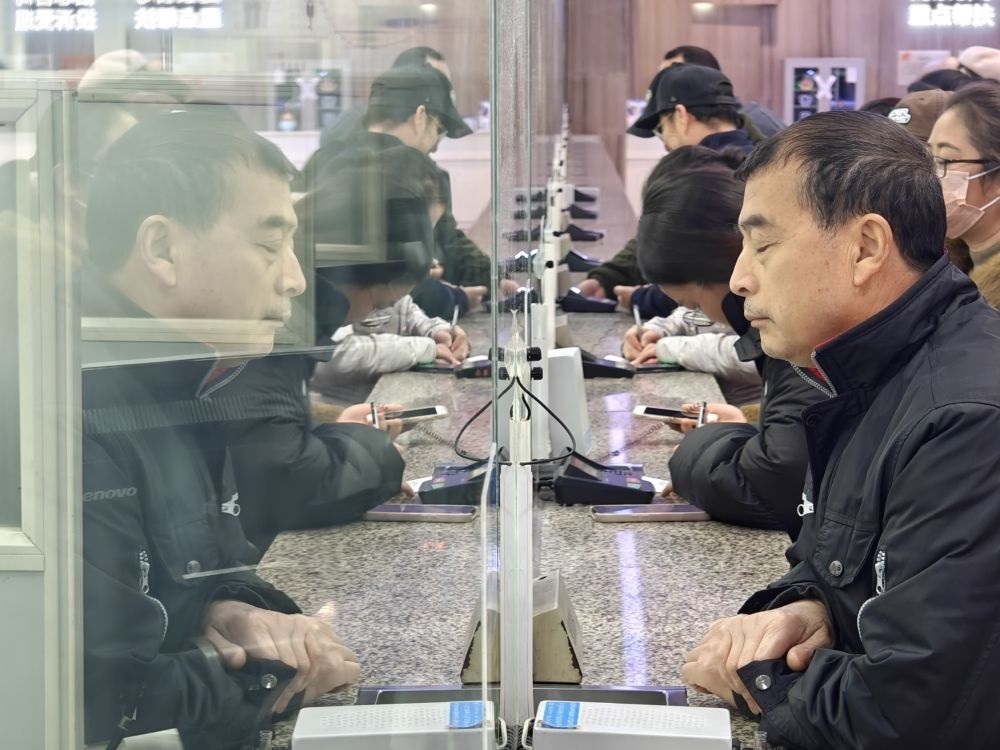 1月17日,旅客在鄭州東站檢票候車。新華社記者 李嘉南 攝