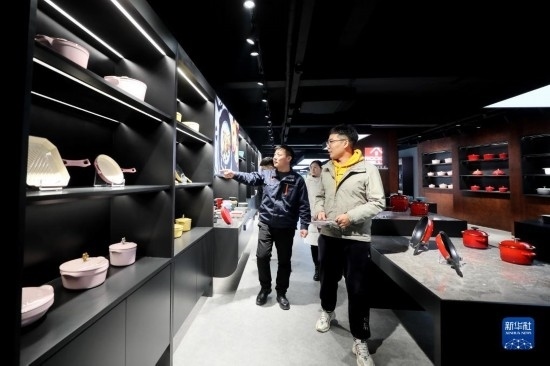 12月21日,在位于隆堯縣的河北三廈廚具科技有限公司產(chǎn)品展廳,工作人員在為客戶(hù)介紹廚具產(chǎn)品。