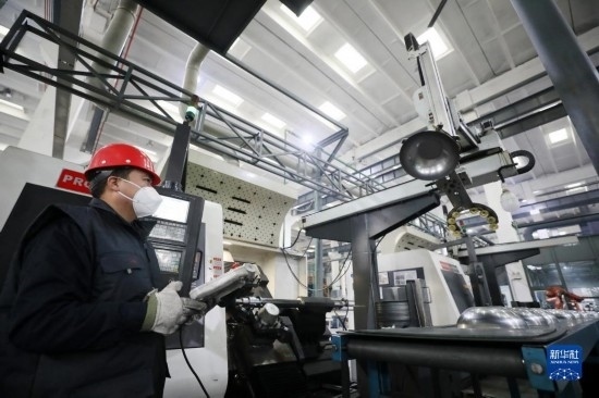 12月21日,在位于隆堯縣的河北遠(yuǎn)大閥門(mén)集團(tuán)有限公司鍛鋼高端定制車(chē)間,工人操控智能設(shè)備加工閥門(mén)產(chǎn)品。