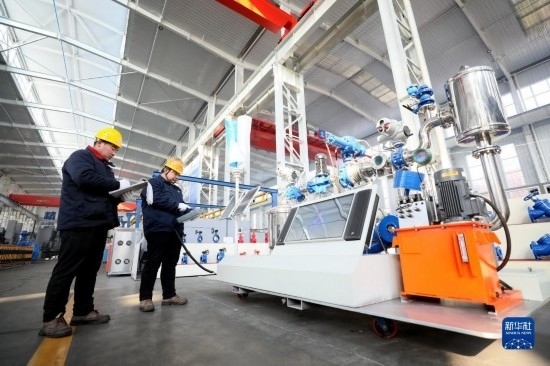 12月21日,在位于隆堯縣的河北遠(yuǎn)大閥門(mén)集團(tuán)有限公司大口徑車(chē)間,工人在查看智能調(diào)水設(shè)備運(yùn)行情況。