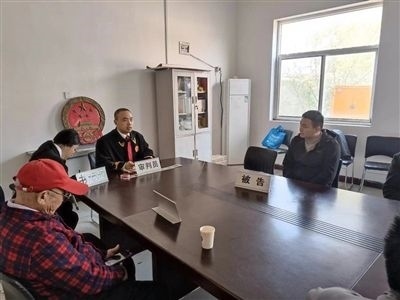 圈頭法庭法官在村委會調(diào)解一起租賃合同糾紛案。曲東哲 攝