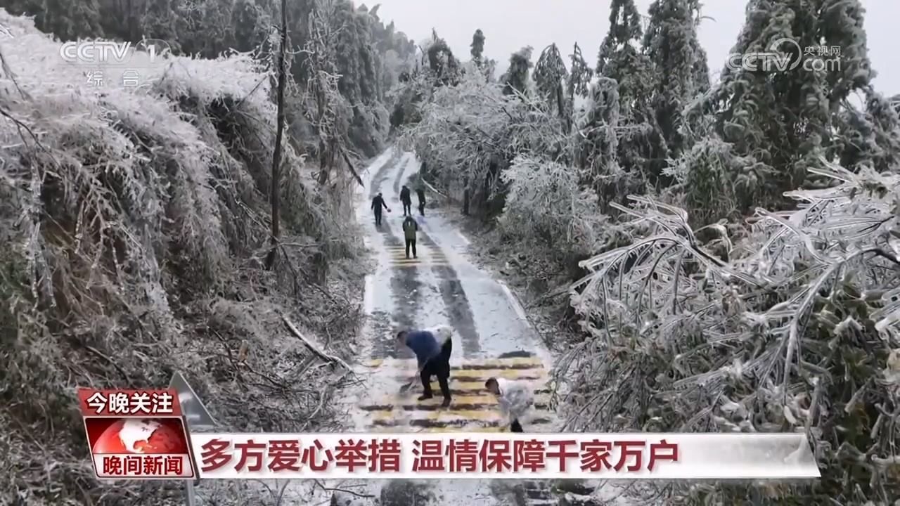 受寒潮影響,近期在江西德安高海拔的塘山鄉(xiāng),唯一一條上下山的主干道嚴(yán)重結(jié)冰,當(dāng)?shù)馗刹咳罕娚仙狡票?,讓返鄉(xiāng)過年的村民順利回家;在合肥,為了城市軌道交通正常運(yùn)行,工人們連夜對覆冰的接觸網(wǎng)除冰作業(yè)。
