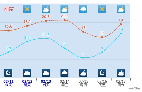 南方在大年初五前后也將達到近期氣溫高點,黃河以南地區(qū)會有大片區(qū)域突破20℃,暖意十足。城市中像是合肥、南京、成都等,都有望迎來今年的首個20℃。