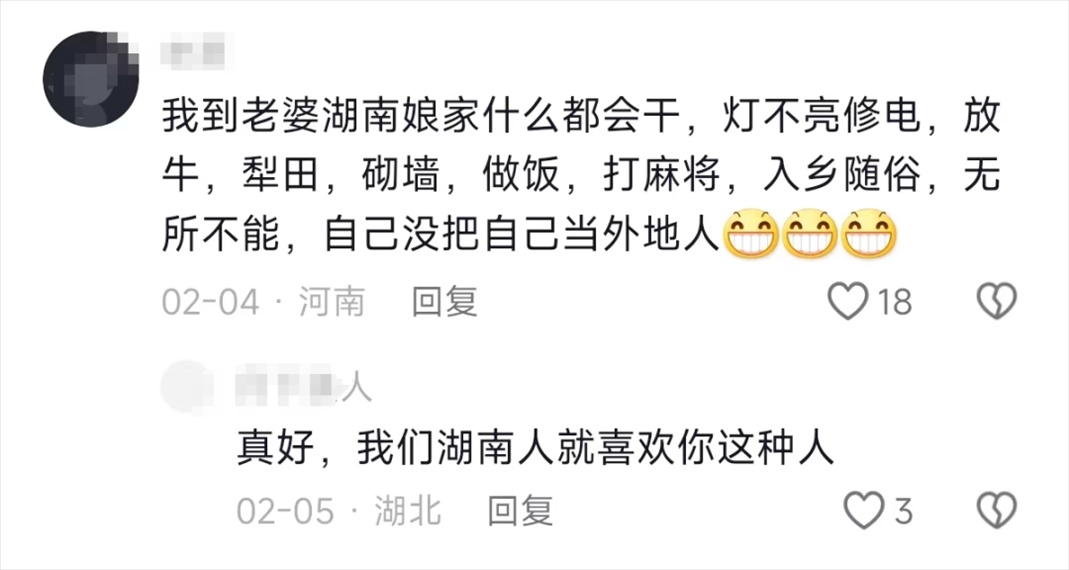 看到“女婿來丈母娘家的統(tǒng)一狀態(tài)”上熱搜,有的外地媳婦表示,自己也是一樣,在過年時充滿尷尬。