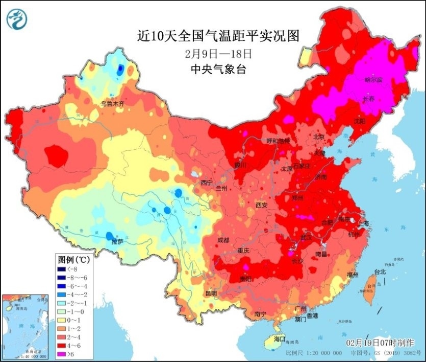 央視網(wǎng)消息:2月19日晨,中央氣象臺(tái)繼續(xù)發(fā)布寒潮橙色預(yù)警。預(yù)計(jì),2月19日08時(shí)至2月21日08時(shí),內(nèi)蒙古東南部、東北地區(qū)、華北大部、黃淮、江淮、江漢、江南北部等地部分地區(qū)將先后降溫8~10℃,其中,東北地區(qū)中東部、華北南部、黃淮大部、江淮中西部、江漢、湖南北部等地降溫12℃~14℃,東北地區(qū)東部等地部分地區(qū)降溫可達(dá)18℃以上。