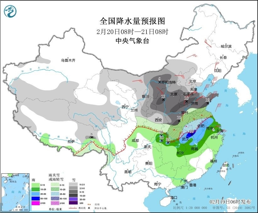 2月19日至22日,中東部地區(qū)將再現(xiàn)大范圍雨雪冰凍天氣。華北西部和南部、黃淮等地有大到暴雪,局地大暴雪;南方雨勢強(qiáng),并伴有雷暴、短時(shí)強(qiáng)降水和冰雹等強(qiáng)對流天氣。河南、安徽、湖北、湖南、貴州等地的部分地區(qū)將先后出現(xiàn)凍雨或冰粒。