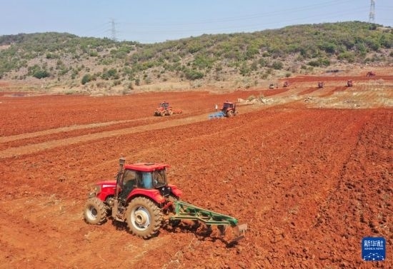 3月7日,在云南省開(kāi)遠(yuǎn)市中和營(yíng)鎮(zhèn),農(nóng)機(jī)手駕駛拖拉機(jī)整地。