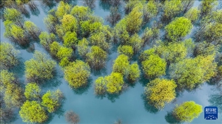 新疆巴州,隨著天氣轉(zhuǎn)暖,冰雪消融的博斯騰湖迎來(lái)大批候鳥(niǎo)。