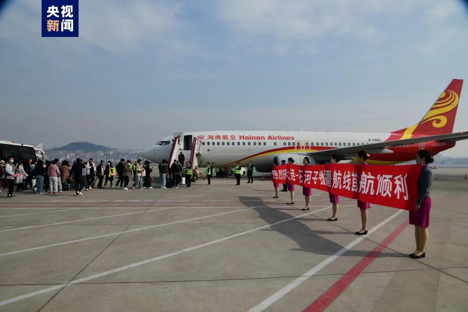 該航線由海南航空波音737-800機(jī)型執(zhí)飛,每周3班。新航線的開通是繼宜昌之后,大連機(jī)場開通的第二條對口支援航線。(總臺記者 賈鐵生)