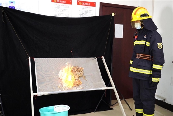 圖四:消防員在展示柳絮點(diǎn)燃實(shí)驗(yàn)。(來(lái)源:新華社)