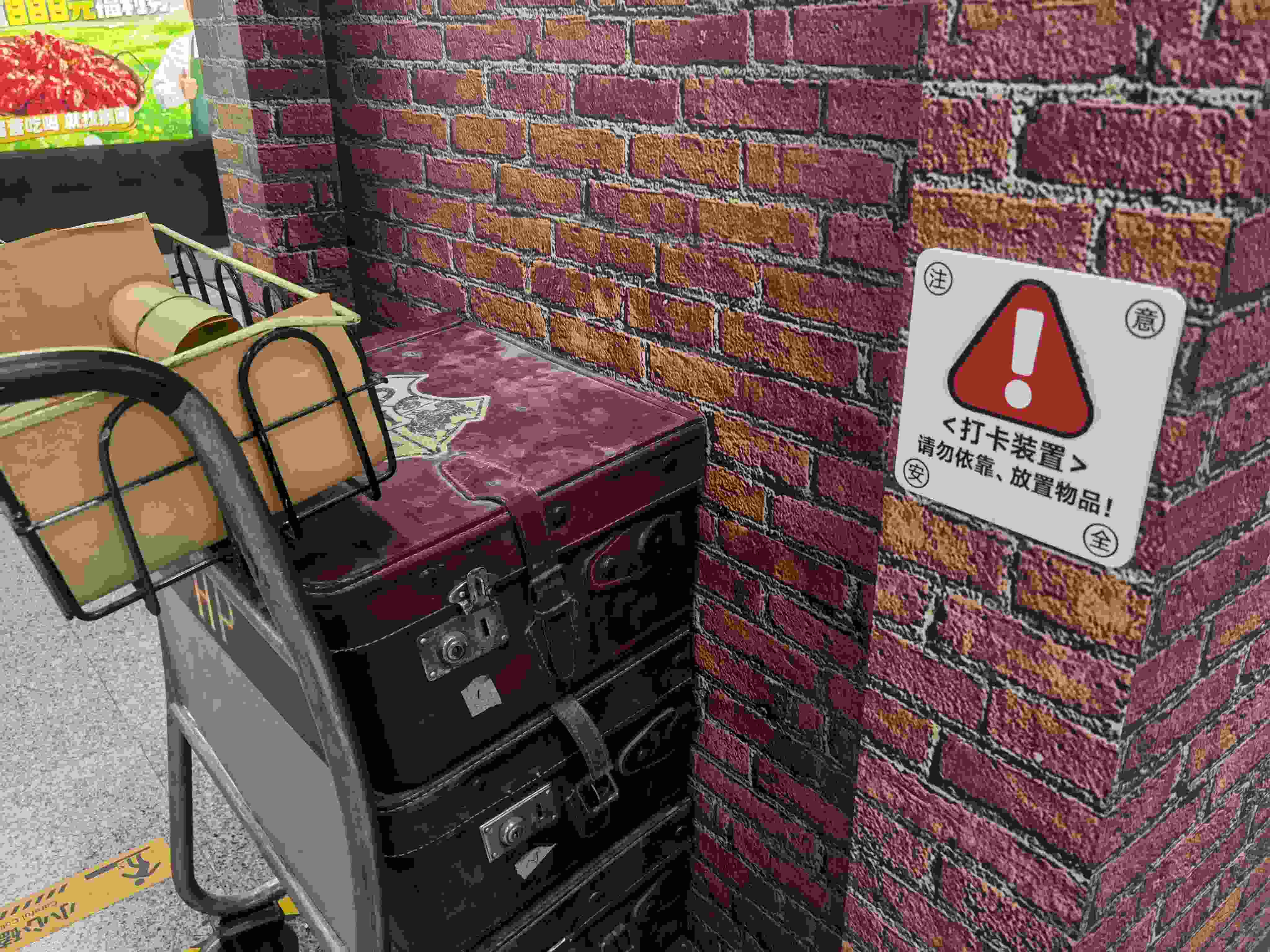 “北京也有9 站臺了!還有誰沒去打卡?”4月9日,在不少社交平臺,這處新加裝的“哈利·波特”主題景觀裝飾墻火了。4月9日下午,記者在地鐵4號線北京大學東門站的站臺上看到,站臺中間被裝飾成了《哈利·波特》經(jīng)典場景9 站臺的樣子。在站臺中間過道處,每一根立柱都被紅磚樣式的海報包裹。最中間的兩根立柱前,分別放置了一輛和電影中一樣“隱沒”在墻里的行李車,車上有3個紅色的小皮箱和一筐黃色的紙卷軸,給整個地鐵站營造出一種復(fù)古的魔法風,吸引了不少乘客圍觀拍照。