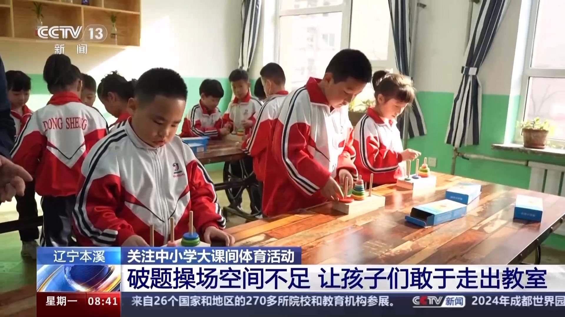 北京市西城區(qū)展覽路第一小學(xué)德育副校長 衛(wèi)春:到了課間,老師是充分給予活動(dòng)時(shí)間的,不會(huì)再留著他們到教室里頭待著,讓孩子們都能夠真正快樂地去享受他們的課間活動(dòng)。