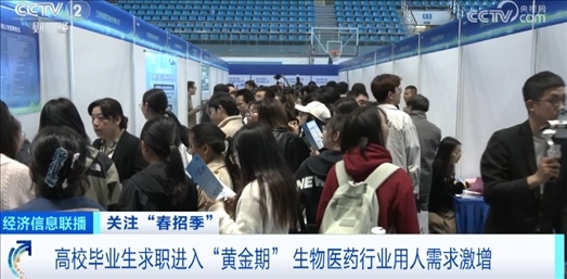 在江蘇南京的一場校園招聘會(huì)上,記者看到,生物醫(yī)藥行業(yè)的招聘企業(yè)占據(jù)了整場招聘會(huì)接近一半的展位。蔣素梅是一家醫(yī)藥研發(fā)企業(yè)的人力資源負(fù)責(zé)人,剛到招聘現(xiàn)場,就有不少學(xué)生前來投遞簡歷。