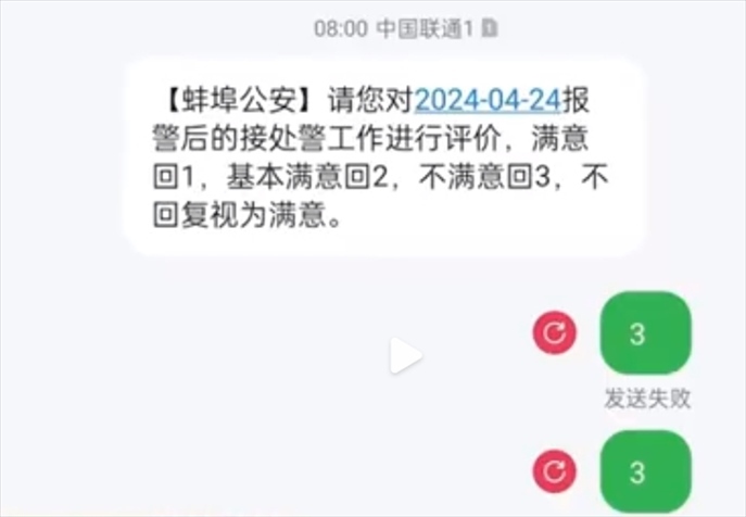 ·滿意度調查回復“不滿意”遭攔截?蚌埠公安民意熱線:或因網(wǎng)絡故障。