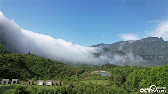 2024年4月26日,重慶,金佛山風(fēng)吹嶺雨后出現(xiàn)罕見的云瀑景觀。