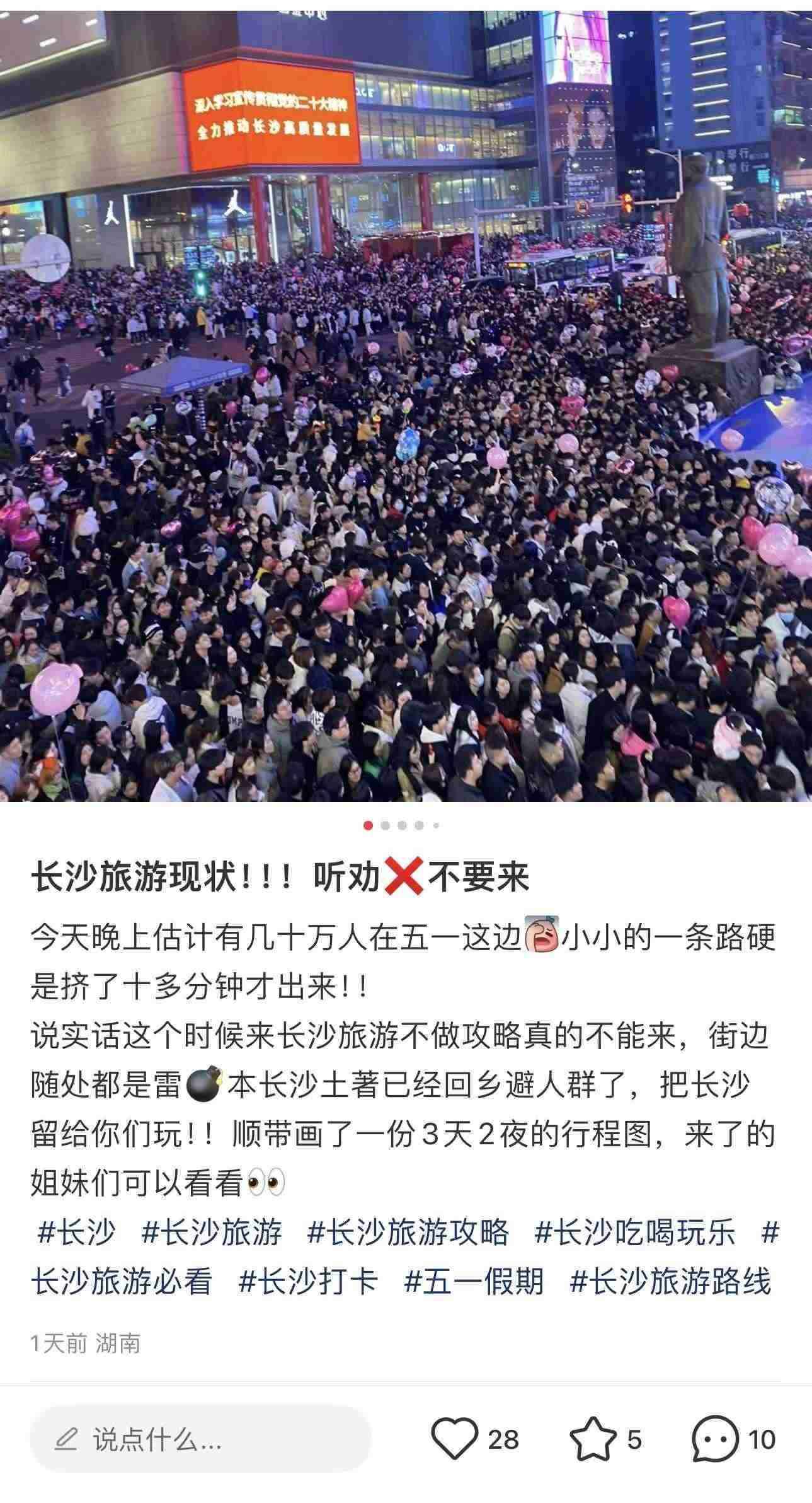 還有長沙的網(wǎng)友表示:“小小的一條路硬是擠了十多分鐘才出來……本長沙土著已經(jīng)回鄉(xiāng)避人群了,把長沙留給你們玩!”