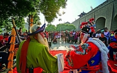 “祖籍陜西韓城縣,杏花村里有家園……”在古城西安古城墻下的環(huán)城公園里,每天都有許多秦腔愛好者自發(fā)聚在一起組成“自樂班”,吹的吹、拉的拉、唱的唱,好不熱鬧。他們中有專業(yè)秦腔演員,有普通的愛好者,有退休職工,有農(nóng)民工、環(huán)衛(wèi)工,還有進(jìn)城幫子女看孩子的奶奶爺爺……不管是專業(yè)的還是業(yè)余的,只要你愿意唱,都可以上場(chǎng)展示一番。這里的“自樂班”可以一個(gè)人拉板胡一個(gè)人唱,也可以一個(gè)小樂隊(duì)伴奏,幾個(gè)人共同唱一段秦腔經(jīng)典劇目的折子戲。