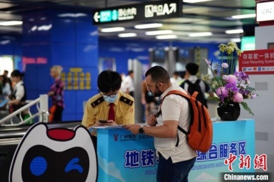 廣交會期間,廣州地鐵提供更便捷、多元化的出行保障,包括設置“綜合服務區(qū)”,提供現(xiàn)場咨詢、外語翻譯、票務導購等多元服務。廣州地鐵集團供圖
