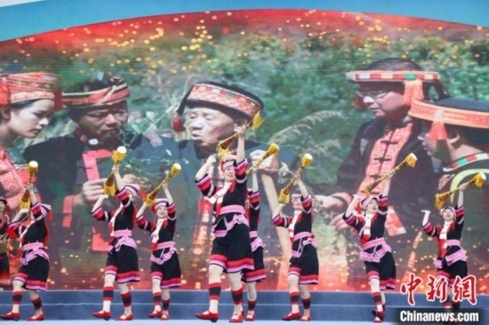 游客觀看瑤族民俗表演。蔡思亮 攝