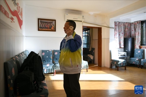 5月13日,在出發(fā)前往周年慶前,張世維在家中聯(lián)系現(xiàn)場(chǎng)細(xì)節(jié)。新華社記者 胥冰潔 攝