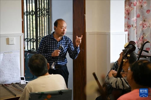 4月15日,樂(lè)隊(duì)指揮王存大為大家講解演奏細(xì)節(jié)。新華社記者 胥冰潔 攝