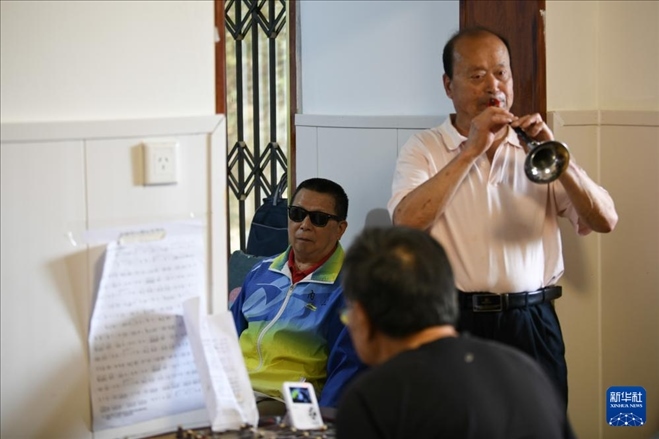 這是5月6日拍攝的“自強(qiáng)不息藝術(shù)團(tuán)盲人樂(lè)隊(duì)”排練現(xiàn)場(chǎng)。 新華社記者 胥冰潔 攝