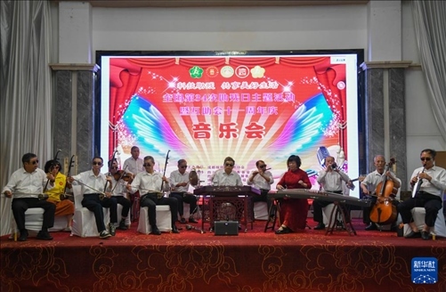 5月13日,“自強(qiáng)不息藝術(shù)團(tuán)盲人樂(lè)隊(duì)”成員在周年慶上演出。新華社記者 胥冰潔 攝