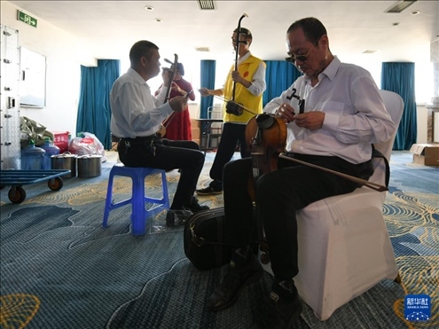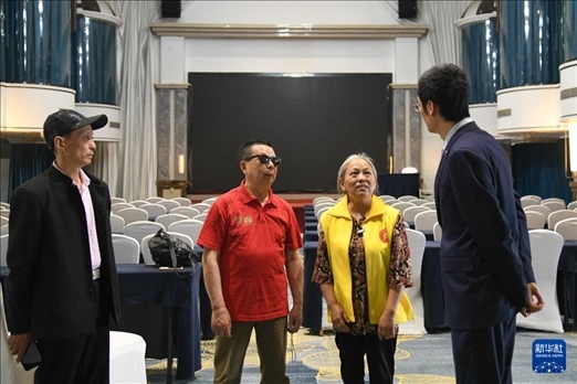 5月13日,“自強(qiáng)不息藝術(shù)團(tuán)盲人樂(lè)隊(duì)”成員準(zhǔn)備登臺(tái)演出。新華社記者 胥冰潔 攝
