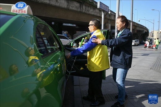 5月13日,張世維在成都雷鋒車隊(duì)志愿者幫助下乘車前往周年慶活動(dòng)現(xiàn)場(chǎng)。新華社記者 胥冰潔 攝