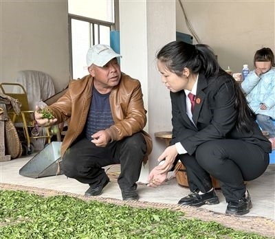 在茶園,法庭干警們向茶農了解了茶葉產(chǎn)出和銷售情況,為茶農詳細講解了茶葉在種植、采摘、加工、包裝過程中易發(fā)生的法律問題,解答了茶農的法律疑問。同時,結合茶農身邊發(fā)生的典型案例,用群眾聽得懂的語言,為茶農講解了茶葉在運輸、銷售過程中應防范的法律風險,提升茶農的法律意識,受到了茶農的一致好評。