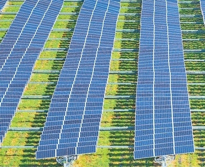 億利立體生態(tài)光伏項(xiàng)目區(qū),光伏面板下長(zhǎng)出牧草。
