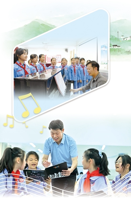 上圖:江西興國縣蕭華紅軍小學(xué)小紅星合唱團(tuán)正在練習(xí)。李 玲攝 下圖:湖北宣恩縣博雅實(shí)驗(yàn)學(xué)校土家娃合唱團(tuán)負(fù)責(zé)人廖光新在指導(dǎo)學(xué)生。陳緒開攝