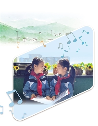 講臺(tái)上,隨著廖光新的雙手向前一打開,學(xué)生們齊刷刷地唱了起來。“今天天氣好,去找嘎嘎(外婆)嘍……”稚嫩而清脆的聲音瞬間充滿整個(gè)教室,透過窗戶傳向遠(yuǎn)處的大山。