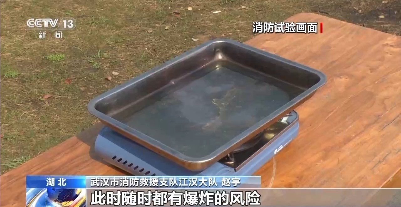 剛才我們看到的兩起事故都是卡式爐爆炸引起的??ㄊ綘t是以瓶裝丁烷氣為主要燃料,用火進(jìn)行直接加熱的非固定式烹飪廚具。在露營(yíng)中,很多人選擇攜帶卡式爐進(jìn)行烹飪,那么,什么情況下卡式爐可能會(huì)發(fā)生爆炸?使用過(guò)程中要注意哪些問(wèn)題?消防人員通過(guò)試驗(yàn)來(lái)給我們做了演示和講解。