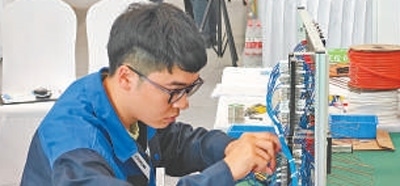 手持記號筆,目光如炬,只見軌道信號控制技術項目選手陳權(見圖,本報記者蔣雨師攝)在電路圖里精準鎖定電路,將一個個接點逐一填入配線表,動作行云流水,一氣呵成。在大賽現(xiàn)場,軌道信號控制技術項目選手需要完成軌道信號設備的設計、施工、調試與檢修工作。就設計環(huán)節(jié)而言,選手們需要把上百條電路信號的轉轍機電路設計圖轉換為電路配線表,但凡有一個接點錯誤,整個電路都將出現(xiàn)問題,而這一環(huán)節(jié),陳權只花了10分鐘。