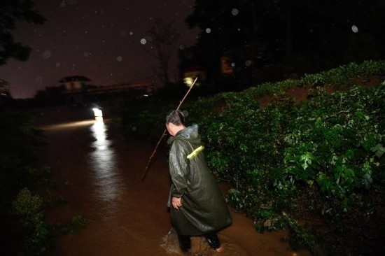 18日晚上,夜色深沉,一陣?yán)坐Q轟然響起,雨還是下了起來(lái)。抓起椅背上的雨衣,抖了抖上面的雨水,呂懷義又開(kāi)始巡堤工作,銀色的雨幕中,河堤上成排的防汛隊(duì)伍清晰可見(jiàn)……(參與采寫(xiě):鄭家寶)