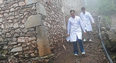 老廠鄉(xiāng)衛(wèi)生院支醫(yī)人員、醫(yī)生傲瑞遠(yuǎn)(右)和護(hù)士何喜到村里巡診。毛 虹攝