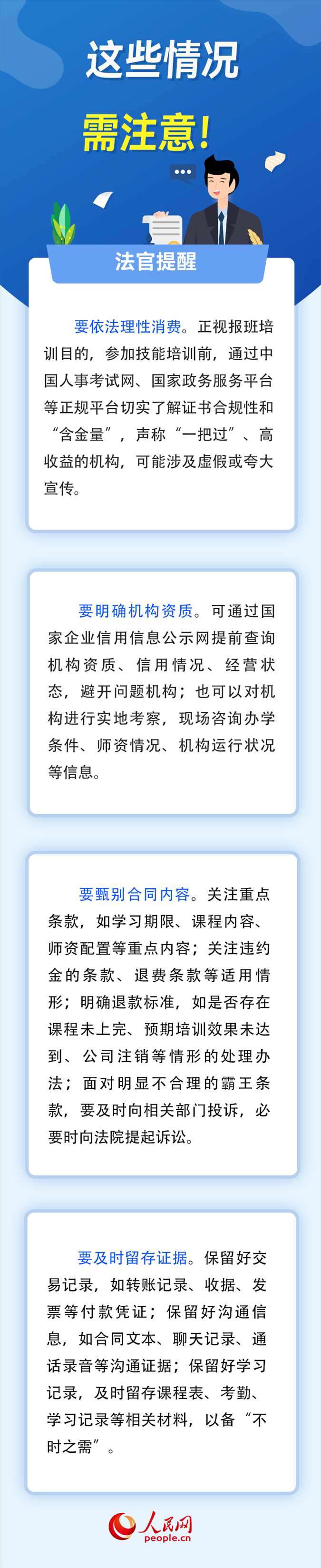 為掌握更多知識技能,“報培訓(xùn)班”成為越來越多人的選擇。然而,部分培訓(xùn)機(jī)構(gòu)虛假宣傳、半路關(guān)門、拒不退費等套路讓消費者防不勝防。如何識別培訓(xùn)報班中的“陷阱”、維護(hù)自身權(quán)益?對此,人民網(wǎng)采訪了北京市通州區(qū)人民法院法官助理李志峰。(高清揚 實習(xí)生 李澤華)