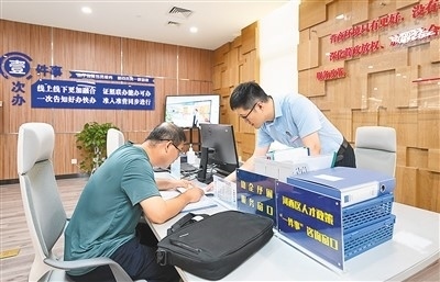 天津市河西區(qū)政務(wù)服務(wù)中心在天津率先設(shè)立“一件事”服務(wù)專廳,在“場(chǎng)景式”服務(wù)基礎(chǔ)上,審批人員還可提供金融融資等增值服務(wù),助力經(jīng)營(yíng)主體發(fā)展。圖為市民在服務(wù)專廳內(nèi)辦理業(yè)務(wù)。 新華社記者 孫凡越攝