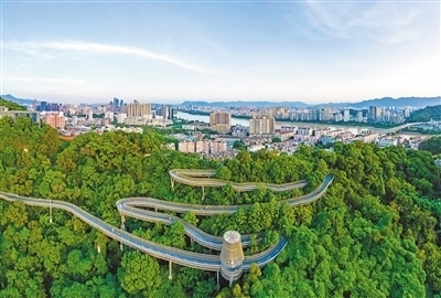 生態(tài)道福建福州市在建設“福道”時,采取鋼結構高架、鏤空橋面棧道、節(jié)點大跨度橋梁等創(chuàng)新設計,最大限度保護森林原生態(tài)。林雙偉攝(人民視覺)