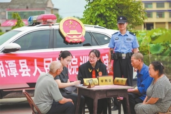 花石法庭與當(dāng)?shù)厮痉ㄋ?、派出所、律師事?wù)所聯(lián)合村委會就該案開展了分析研判,多次組織雙方當(dāng)事人協(xié)商,一直未達成協(xié)議。為避免糾紛久拖不決,同時考慮到雙方是幾十年的鄰居,法官決定將庭審“搬”至當(dāng)事人家門口。