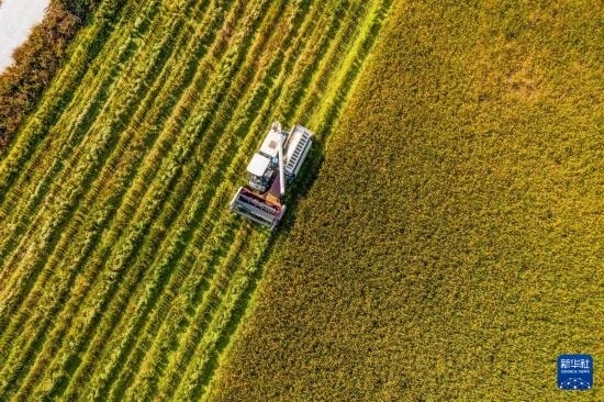 近日,浙江省湖州市吳興區(qū)東林鎮(zhèn)萬畝稻田迎來豐收季,當(dāng)?shù)胤N糧戶搶抓農(nóng)時,趁著天氣晴好搶收水稻,確保顆粒歸倉。目前,東林鎮(zhèn)全鎮(zhèn)水稻種植面積20000余畝。