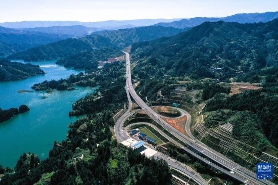 10月25日,車輛在貴州劍黎高速固本互通附近行駛(無人機照片)。