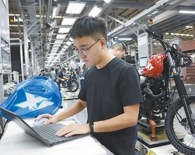 “哪個(gè)環(huán)節(jié)的裝配參數(shù)和給定值不吻合,系統(tǒng)就會(huì)自動(dòng)報(bào)警,不再需要人工巡檢,效率得到大幅提升?!标悋?guó)靖說(shuō),得益于數(shù)智化生產(chǎn)線,每150秒就有一輛摩托車下線。