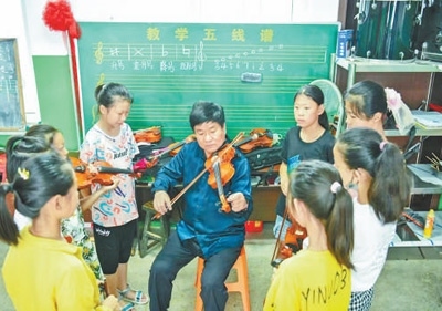 教學(xué)漸漸步入正軌后,張玉立還將支教的范圍擴(kuò)大到其他4個同樣偏僻的鄉(xiāng)鎮(zhèn)。山路崎嶇,往返山間,張玉立樂此不疲。“‘把琴聲送進(jìn)大山’不僅能夠豐富孩子們的生活,還可以幫助他們走出大山?!睆堄窳⒄f,經(jīng)過一段時間的教學(xué)以后,自己開始有意識地挑選對小提琴有興趣、有天賦的孩子,成立小提琴班,利用課外時間進(jìn)行專門訓(xùn)練。